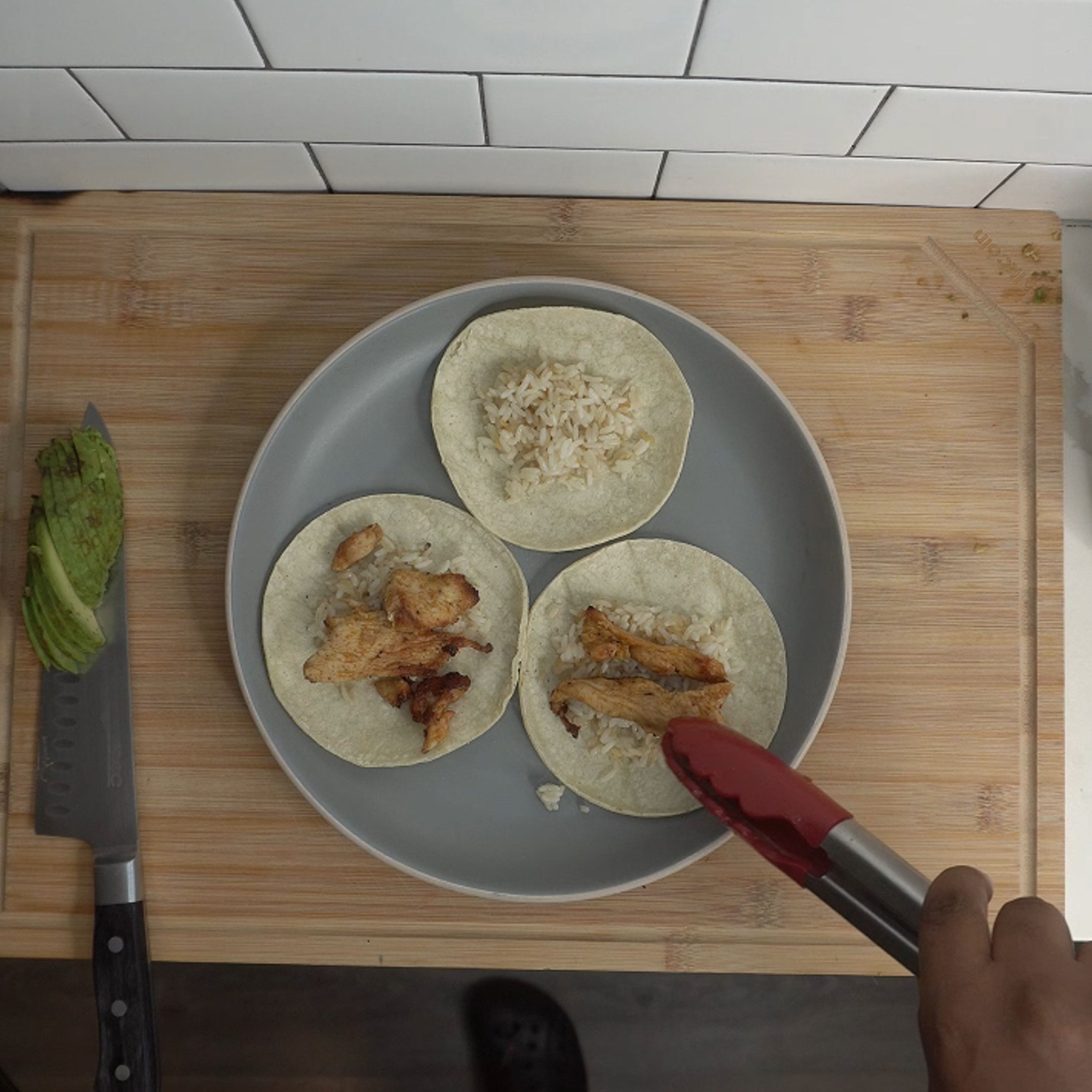 Top with chicken, sliced avocado, and any extras like Greek yogurt or hot sauce.